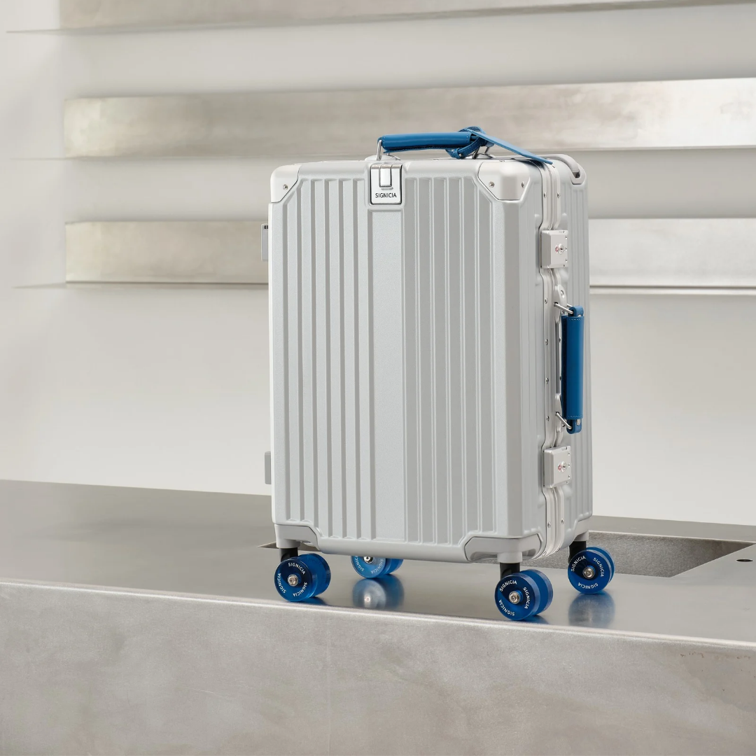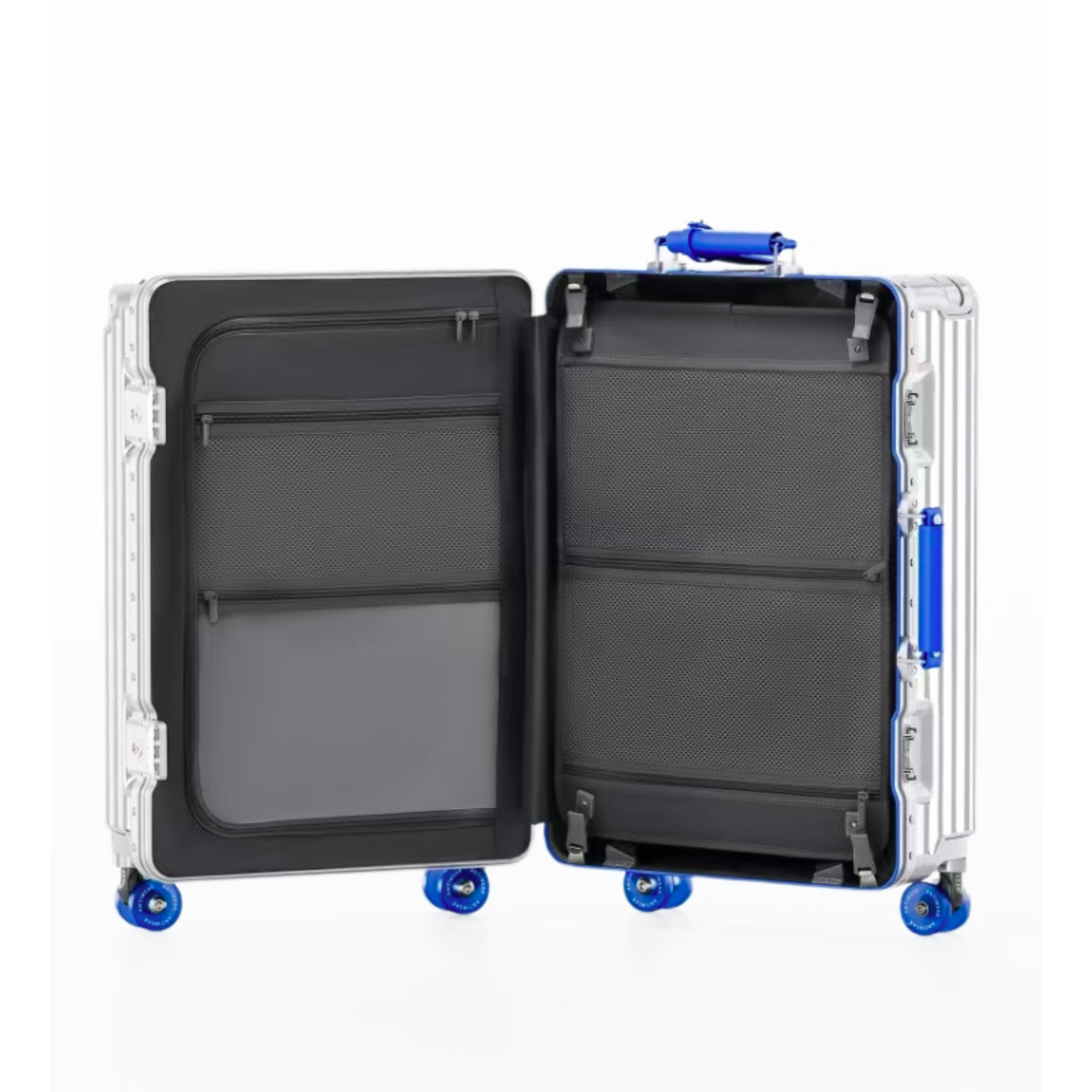 Contoured silhouette is accented with brushed aluminum alloy corners, thoughtfully placed to enhance structural strength and elevate the visual finish.